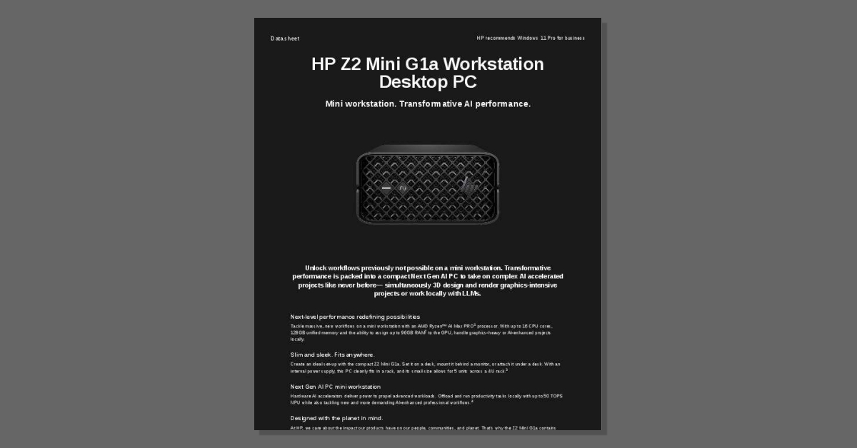 Discover how to unlock workflows previously not possible. Get the HP Z2 Mini G1A Workstation Desktop PC datasheet when you complete this short form.